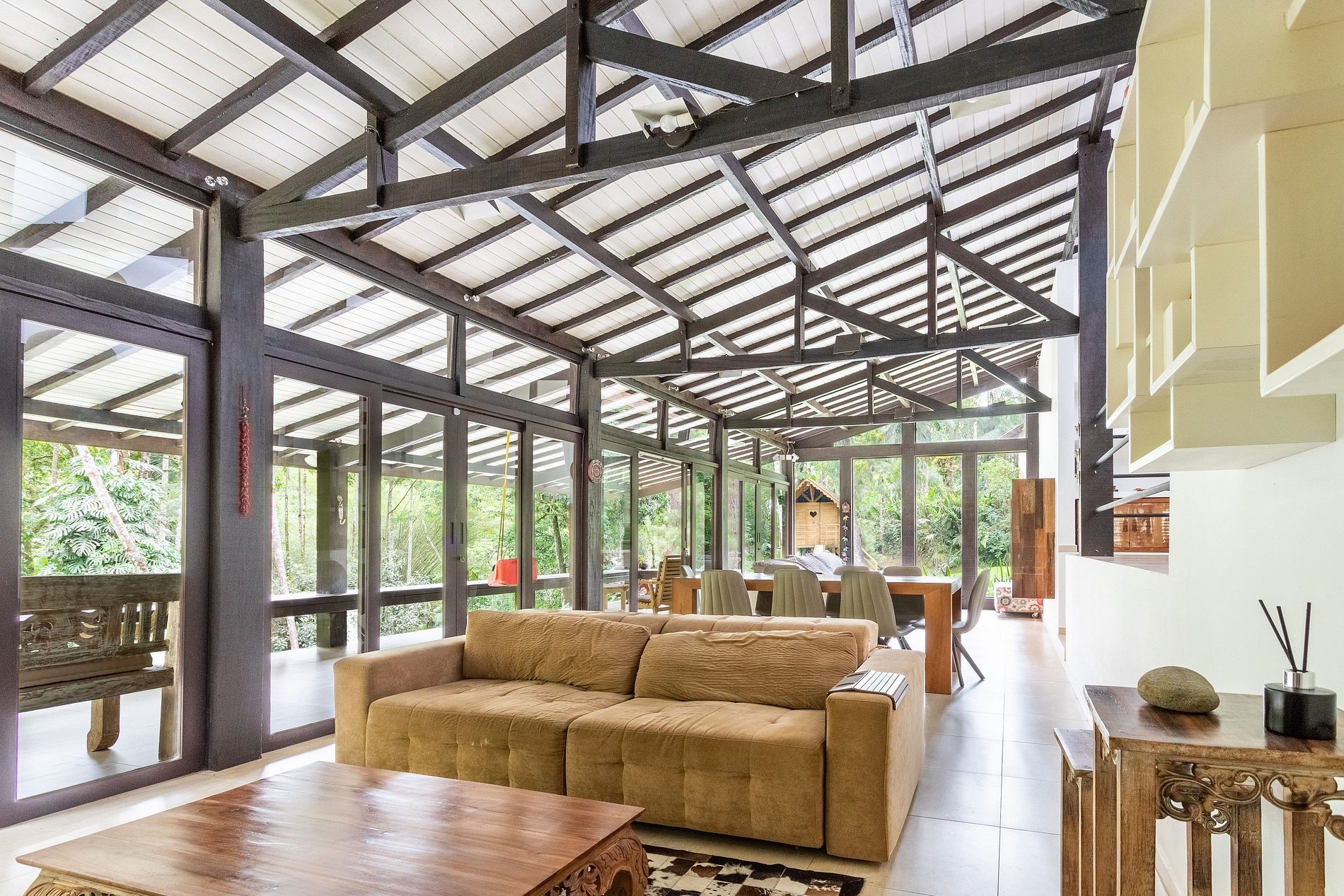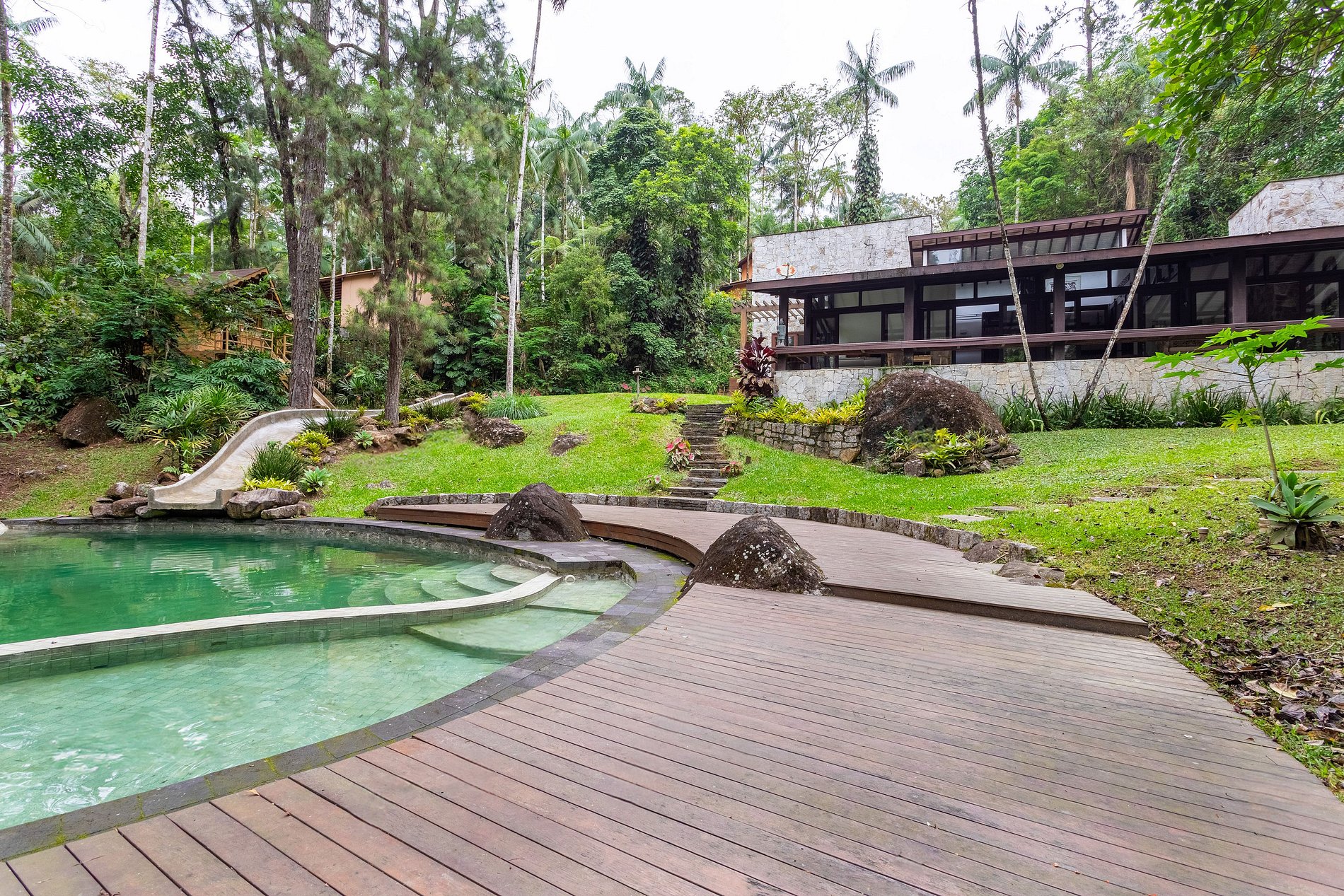 Capa da revista Casa e Jardim, este projeto foi desenvolvido com o objetivo de trazer a natureza para dentro de casa. 240 m2 construídos com requinte, amplas janelas, vistas maravilhosas da mata Atlântica e uma piscina incrível beirando um belo riacho que produz um som revigorante, experiência única e inesquecível de conforto e integração total com a natureza. Compartilha espaço de 6mil m2 com chalé, que pode ser alugado em conjunto (consulte disp. e valor). Siga-nos no insta @casadolobopenedo