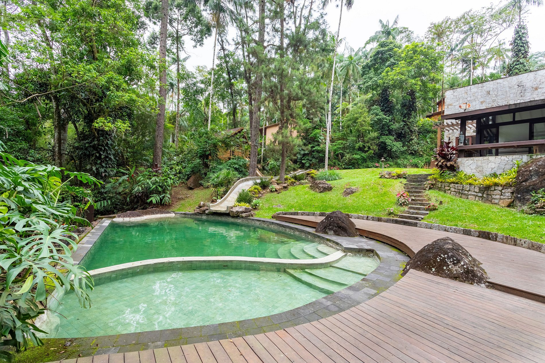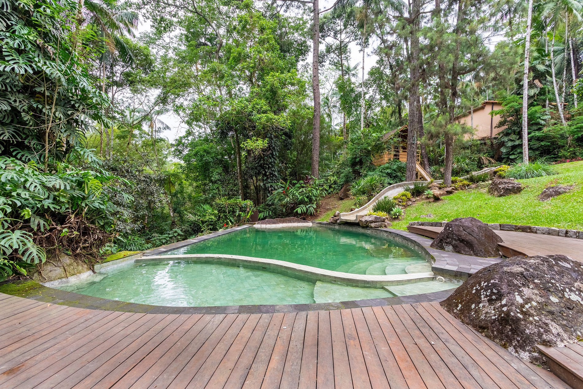 Capa da revista Casa e Jardim, este projeto foi desenvolvido com o objetivo de trazer a natureza para dentro de casa. 240 m2 construídos com requinte, amplas janelas, vistas maravilhosas da mata Atlântica e uma piscina incrível beirando um belo riacho que produz um som revigorante, experiência única e inesquecível de conforto e integração total com a natureza. Compartilha espaço de 6mil m2 com chalé, que pode ser alugado em conjunto (consulte disp. e valor). Siga-nos no insta @casadolobopenedo Possui dois riachos que cruzam a propriedade e uma piscina de água natural espetacular com uma área própria para crianças pequenas e um tobogã para todas as idades. Possui todas as amenidades necessárias para curtir momentos incríveis com sua família (crianças a partir de 6 anos pagam) e amigos, área social aberta e integrada com lareira, smart tv de 55 polegadas, internet de fibra ótica, varanda espaçosa, para relaxar ao fim da tarde ao som das águas, quartos confortáveis, suíte master ampla com closet e banheiro grande com banheira hidromassagem para duas pessoas, banheiros com chuveiros à gás, cozinha completa com máquina de lavar louça, microondas, fogão, geladeira, cafeteira e muito mais. Possui também anexo com área de churrasqueira e deck com lounge. O hóspede tem acesso a toda a propriedade