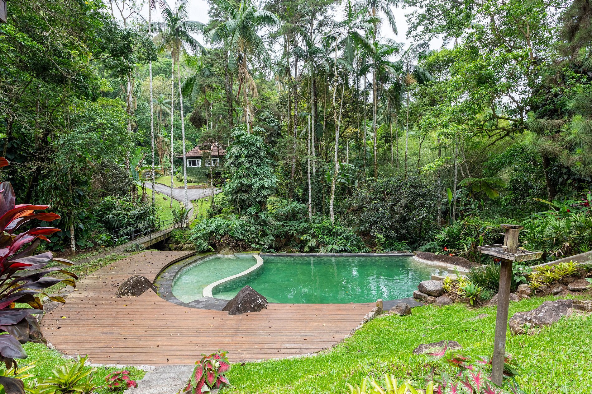 Possui dois riachos que cruzam a propriedade e uma piscina de água natural espetacular com uma área própria para crianças pequenas e um tobogã para todas as idades. Possui todas as amenidades necessárias para curtir momentos incríveis com sua família (crianças a partir de 6 anos pagam) e amigos, área social aberta e integrada com lareira, smart tv de 55 polegadas, internet de fibra ótica, varanda espaçosa, para relaxar ao fim da tarde ao som das águas, quartos confortáveis, suíte master ampla com closet e banheiro grande com banheira hidromassagem para duas pessoas, banheiros com chuveiros à gás, cozinha completa com máquina de lavar louça, microondas, fogão, geladeira, cafeteira e muito mais. Possui também anexo com área de churrasqueira e deck com lounge.