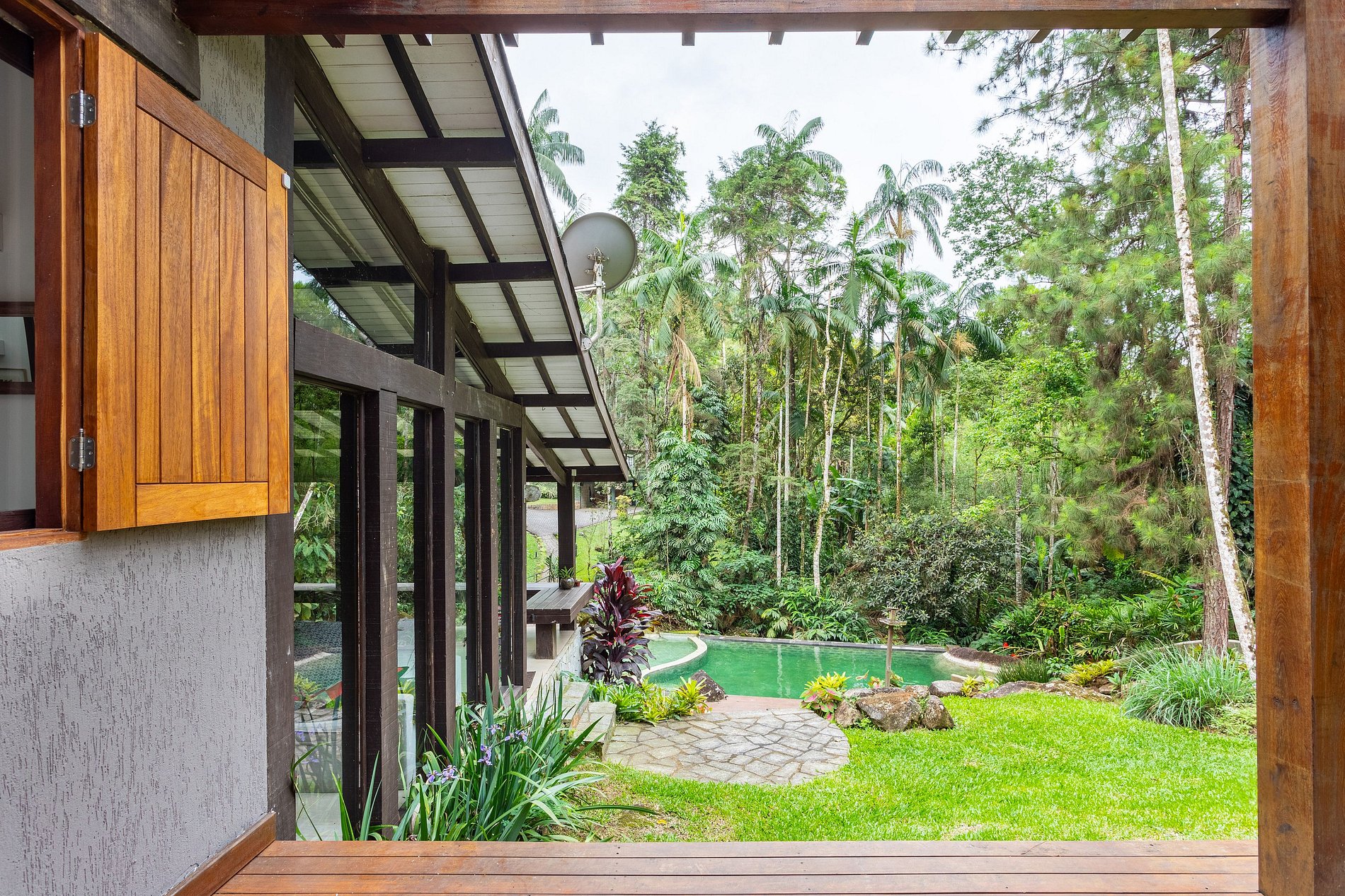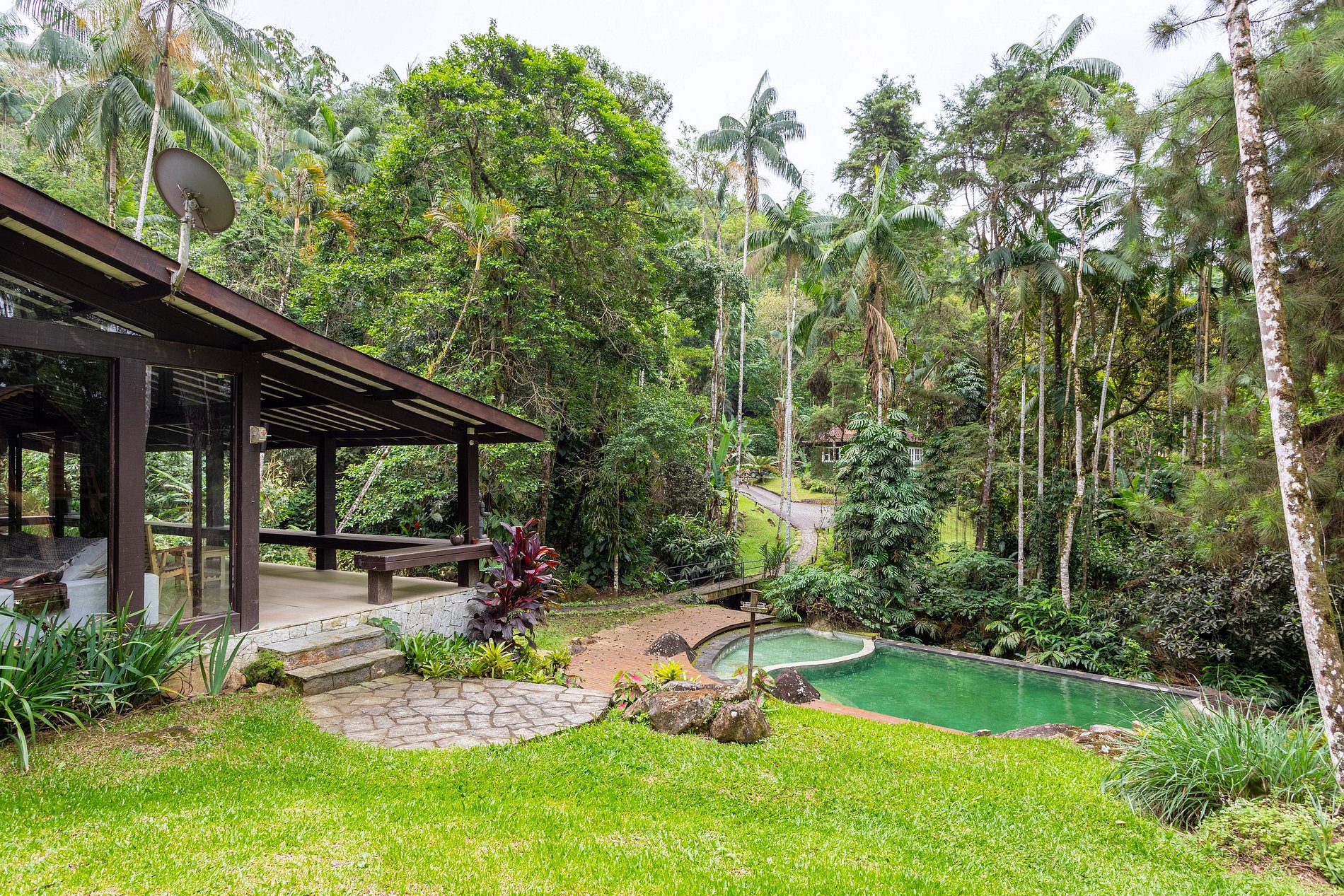 Capa da revista Casa e Jardim, este projeto foi desenvolvido com o objetivo de trazer a natureza para dentro de casa. 240 m2 construídos com requinte, amplas janelas, vistas maravilhosas da mata Atlântica e uma piscina incrível beirando um belo riacho que produz um som revigorante, experiência única e inesquecível de conforto e integração total com a natureza. Compartilha espaço de 6mil m2 com chalé, que pode ser alugado em conjunto (consulte disp. e valor). Siga-nos no insta @casadolobopenedo