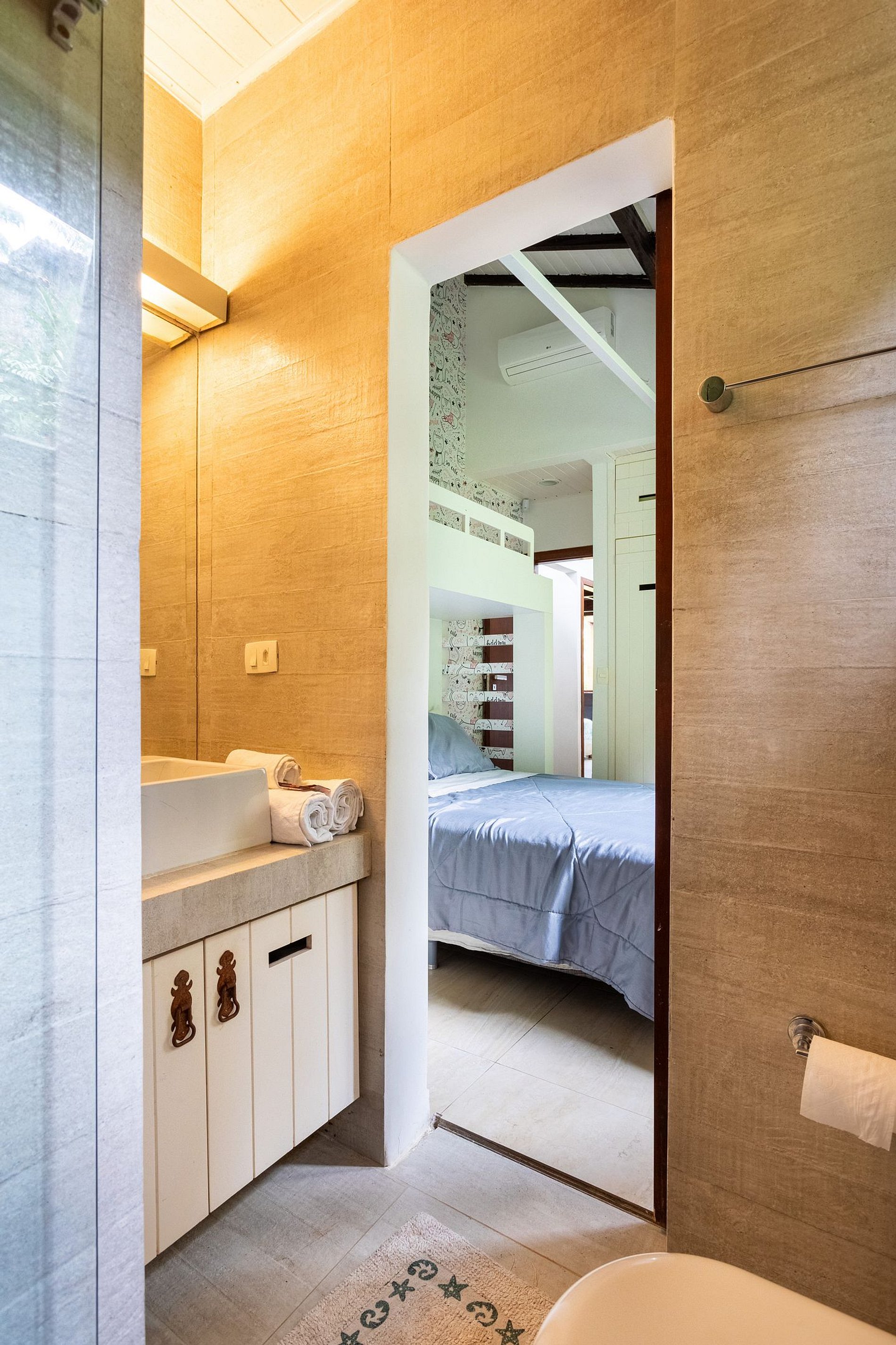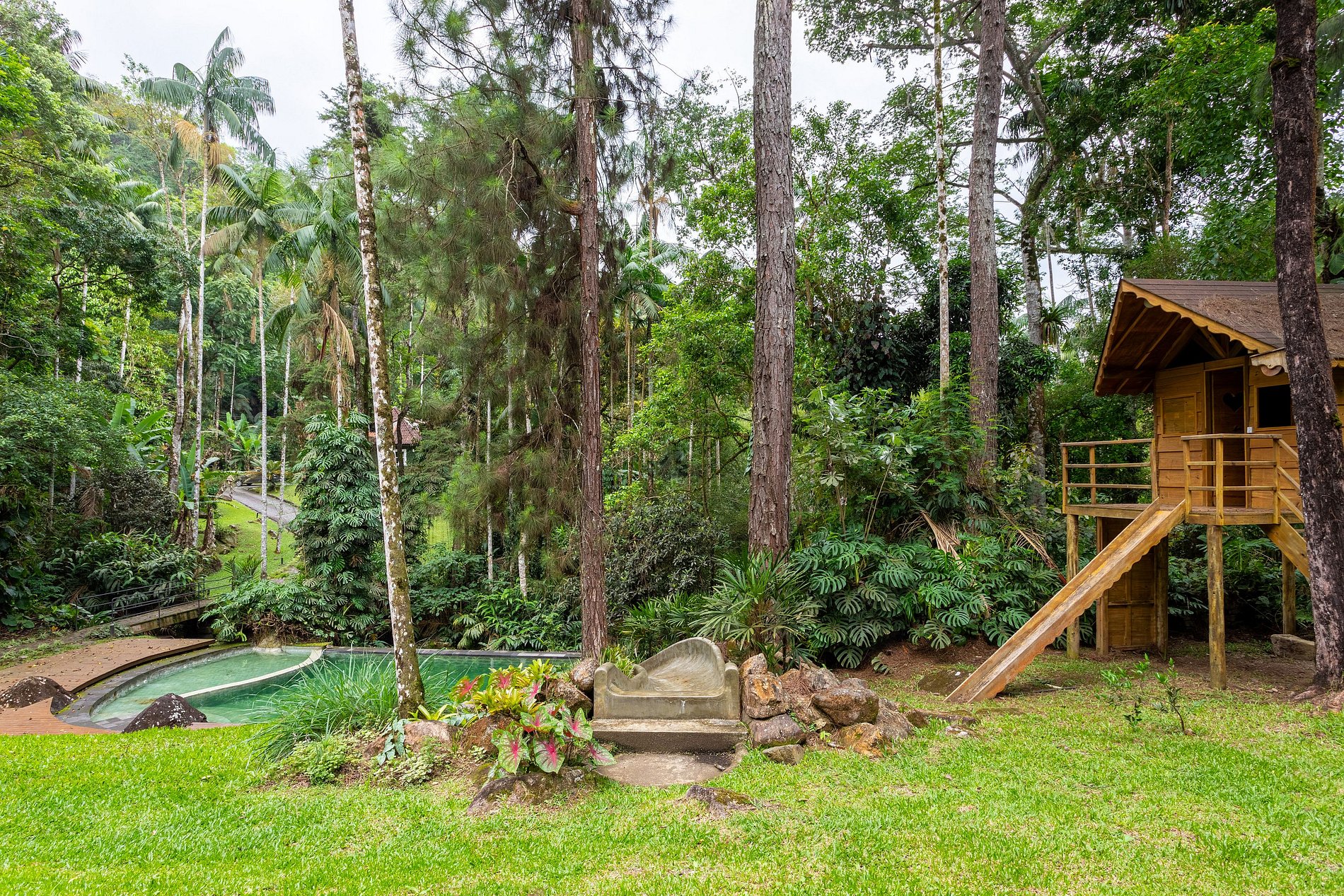 Possui dois riachos que cruzam a propriedade e uma piscina de água natural espetacular com uma área própria para crianças pequenas e um tobogã para todas as idades. Possui todas as amenidades necessárias para curtir momentos incríveis com sua família (crianças a partir de 6 anos pagam) e amigos, área social aberta e integrada com lareira, smart tv de 55 polegadas, internet de fibra ótica, varanda espaçosa, para relaxar ao fim da tarde ao som das águas, quartos confortáveis, suíte master ampla com closet e banheiro grande com banheira hidromassagem para duas pessoas, banheiros com chuveiros à gás, cozinha completa com máquina de lavar louça, microondas, fogão, geladeira, cafeteira e muito mais. Possui também anexo com área de churrasqueira e deck com lounge.